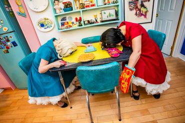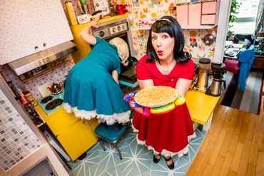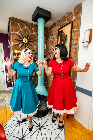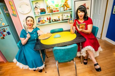 Audience participation is the main ingredient in this delicious comedy cocktail. Suggestions from the audience help them re-write their ‘Helpful Housewife Tips.’ The gals get to know the audience by giving out ‘Welcome Wagon’ treats. They may even re-create a ‘Day in the Life’ of a woman in the audience who has both a family and (CLUTCH PEARLS) a job!